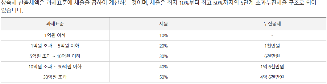 이처럼 상속세는 세율 구조가 누진적이므로, 공제 항목을 잘 활용하는 것이 중요합니다.