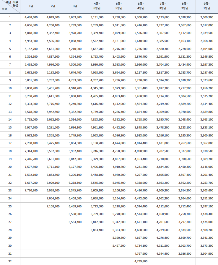 2025년 공무원 봉급표 최신 월급 확인